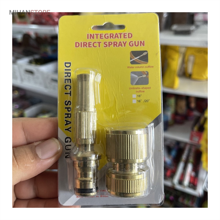 کارواش سر شلنگی برنجی ابعاد 9*2.5 سانتی‌متر و جنس برنج. این نازل کارواش بصورت دو تکه می باشد که می توانید آن را بصورت سوزنی و یا پخش کامل و قفل استفاده نمایید در برابر زنگ زدنی و خوردگی باتوجه به برنجی بودن آن بسیار مقاوم است مناسب جهت انواع کاربردها از جمله شستشوی های خانگی ، خودرو ،آبیاری و … می باشد.