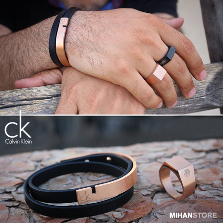 دستبند چرم و استیل طرح CK نمونه‌ای از زیورهای ظریف و در عین حال پرطرفدار از جانب آقایان و خانم ها است که با اکثر رنگ‌های لباس همخوانی داشته و در عین حال متفاوت دیده می‌شود. این دستبند فوق العاده شیک از یک لایه چرم و یک لایه استیل و نماد زیبای برند CK با رنگ های لوگو مسی، نقره ای و طلایی عرضه شده است.