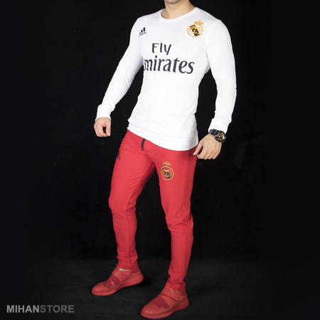 ست تی شرت و شلوار Real Madrid متشکل از شلوار فوق العاده راحت از جنس پارچه دیور ترک و تی شرت آستین بلند اسلیم فیت از جنس پنبه است که تناسب بی نظیری با هم داشته و زیبایی چشمگیری دارند. این ست چه در تفریح و سرگرمی و چه در منزل و باشگاه و حتی خارج از منزل مناسب ترین انتخاب شما خواهد بود. این محصول با کیفیت و طراحی بی نظیر به صورت فری سایز (مناسب سایز لارج و ایکس لارج) عرضه شده است.